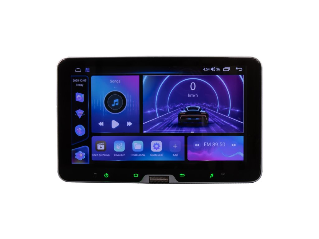 1DIN multimediální autorádio s 10" LCD na kloubu a rotačním ovladačem s operačním softwarem Android, Wi-Fi, GPS, Bluetooth, CarPlay, Mirror link, 4G.