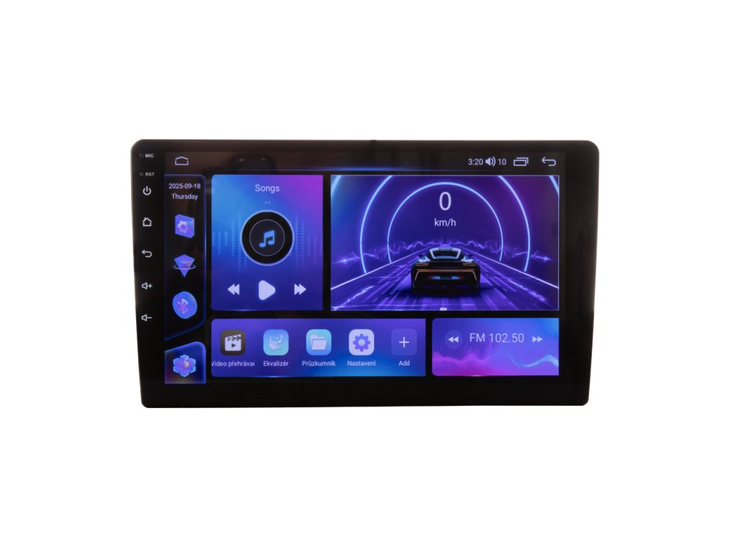 2DIN multimediální autorádio s 9" LCD s operačním softwarem Android, Wi-Fi, GPS, Bluetooth, CarPlay, Mirror link, 4G.