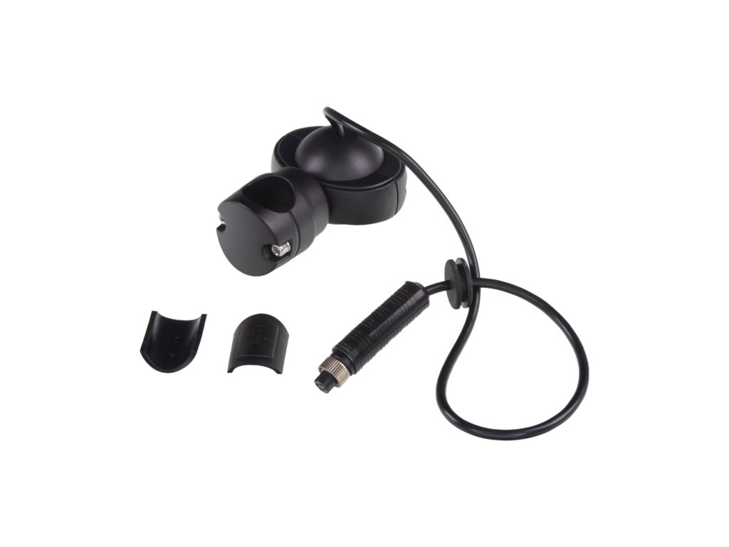 AHD kamera CCD s IR světlem a HD rozlišením (720P), vnější, určená pro montáž na trubku, především na konstrukci zrcátek s trubkovým rámem nákladních vozů, autobusů, karavanů či dodávek. Propojení 4-PINovým kabelem. Kameru lze připojit pouze k zařízením s technologií AHD (analog HD technology), nelze připojit k běžným monitorům, které nemají AHD!