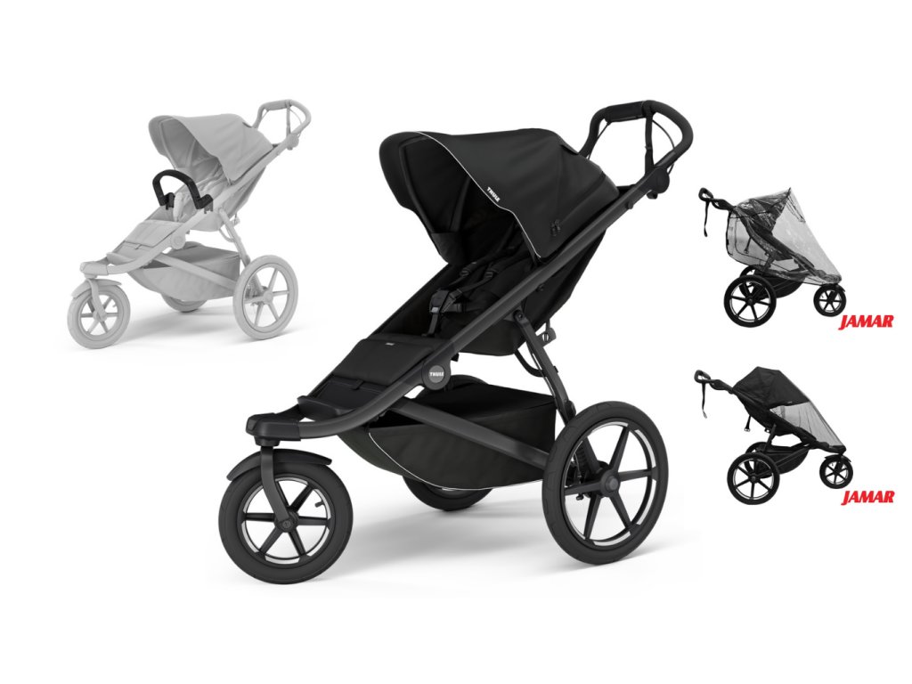 Výhodný set kočárku Thule Urban Glide včetně madla, moskytiéry a pláštěnky. Madlo zajistí vyšší pohodlí a bezpečí pro vaše dítě při jízdě v kočárku a s pláštěnkou Vás nezastaví žádné nepříznivé počasí.