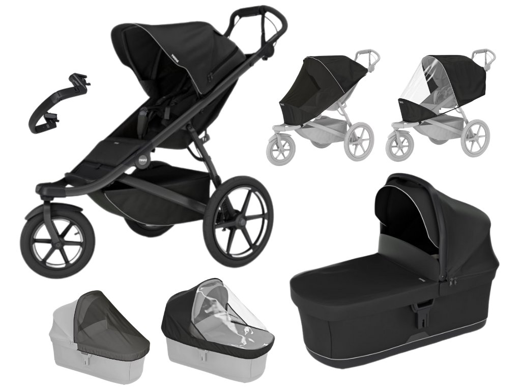 Akční set Thule Urban Glide 3 Black s magnetickou přezkou+ korba black + pláštěnka + moskytiéra + madlo + pláštěnka na korbu + moskytiéra na korbu originál autorizovaný prodejce THULE