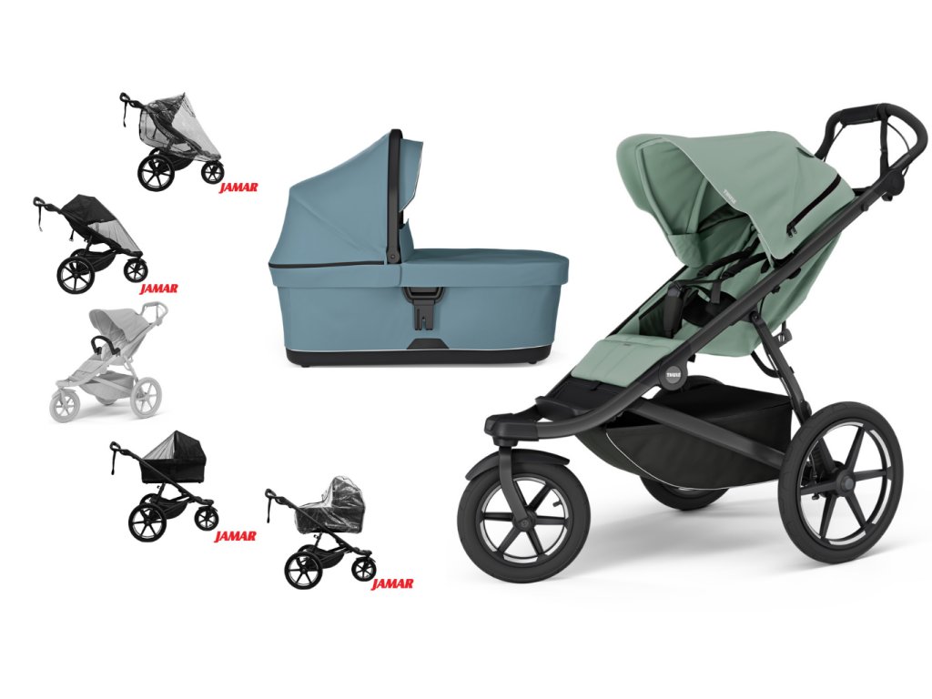 Akční set Thule Urban Glide 3 Mist green + korbička Mid Blue + madlo Thule + pláštěnky Altabebe + moskytiéra Zopa Autorizovaný prodejce