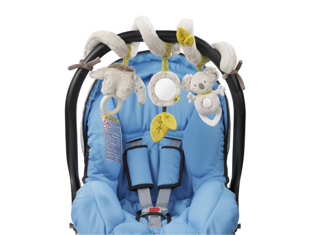 Aktivity spirála Australia je roztomilým doplňkem na hraní pro Vaše zlatíčko. Díky svému flexibilnímu tvaru je možné ji využít v kočárku, dětské postýlce, na cestách v autě, ale i všude tam, kde to uznáte za vhodné. Obsahuje několik prvků, které zaměstnají všechny vjemy děťátka. Chrastítko zaujme zvědavé dětské ouška, zrcátko láká očka a využití různých materiálů a také integrovaného kousátka, se postarají o to, že hračka zaměstná opravdu všechny smysly Vašeho maličkého.