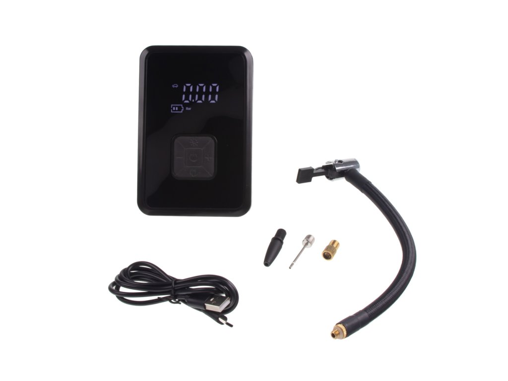Kompresor má vestavěný LCD displej pro sledování tlaku v pneumatice v reálném čase. Automaticky se zastaví, když dosáhne přednastavené hodnoty tlaku vzduchu.