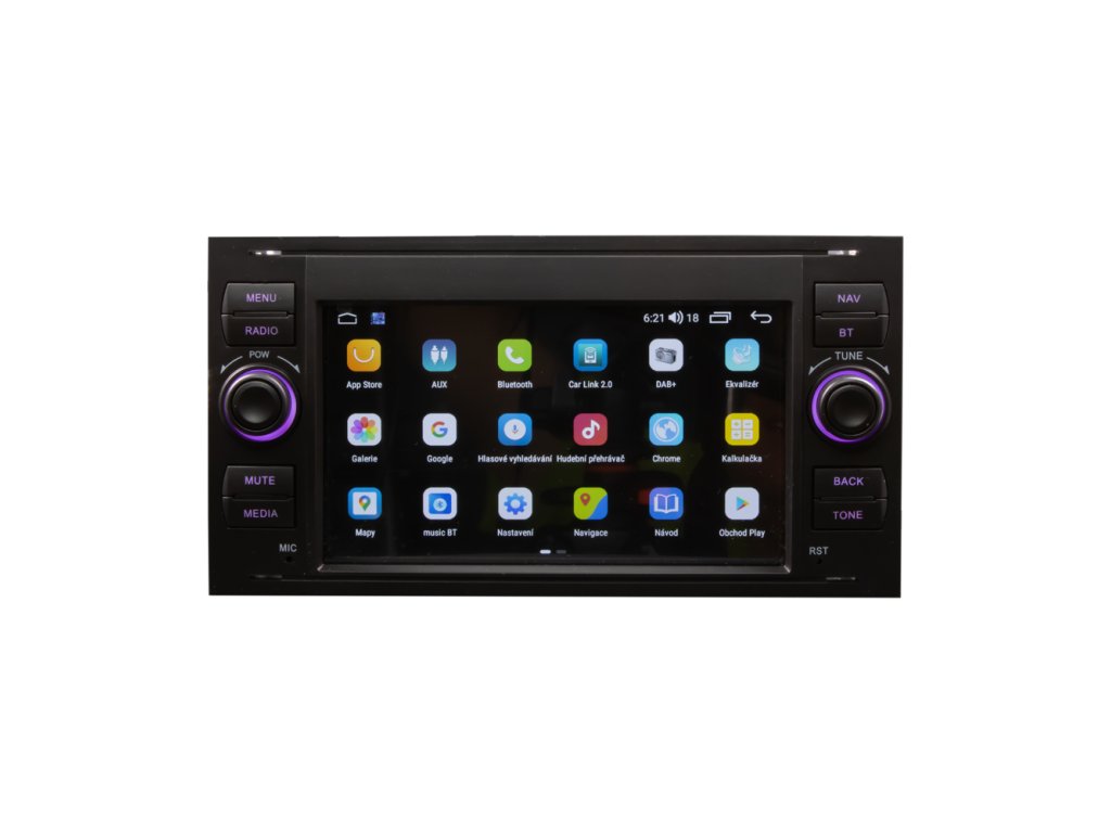 Multimediální autorádio v OEM tvaru s operačním softwarem Android, Wi-Fi, GPS, Bluetooth, CarPlay, Mirror link, 4G.