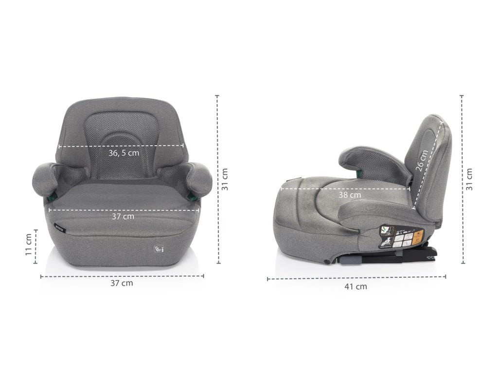 Bederní opěrka a opěrka na ruce se postarají o to, aby se dítě cítilo během cesty pohodlně. Celou autosedačku pokrývá měkké polstrování a potahy. Podsedák je určený pro děti od 125 centimetrů a lze ho používat až do 150 cm (12 let), dokdy je potřeba vozit dítě v autosedačce.