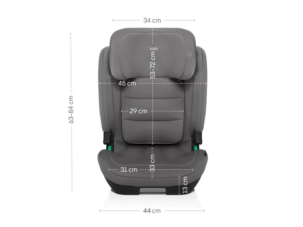 Prostorná autosedačka s měkkými potahy a možností naklonění do 4 ergonomických poloh zajistí pohodlnou cestu i při delší jízdě a během spánku. Polohování se dá jednoduše nastavit pojistkou ve přední části autosedačky. Opěrka hlavy nabízí až 10 poloh nastavení, díky tomu autosedačka roste s dítětem.