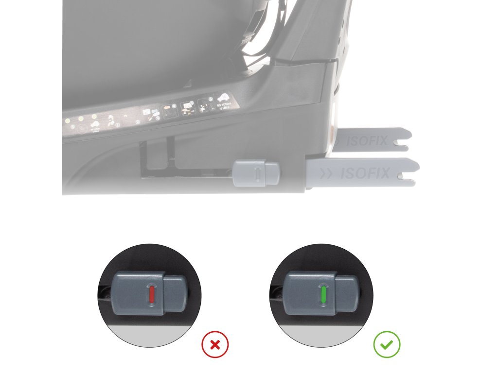 • Pojistka proti otáčení autosedačky je na boku (prevence zaseknutí pojistky)