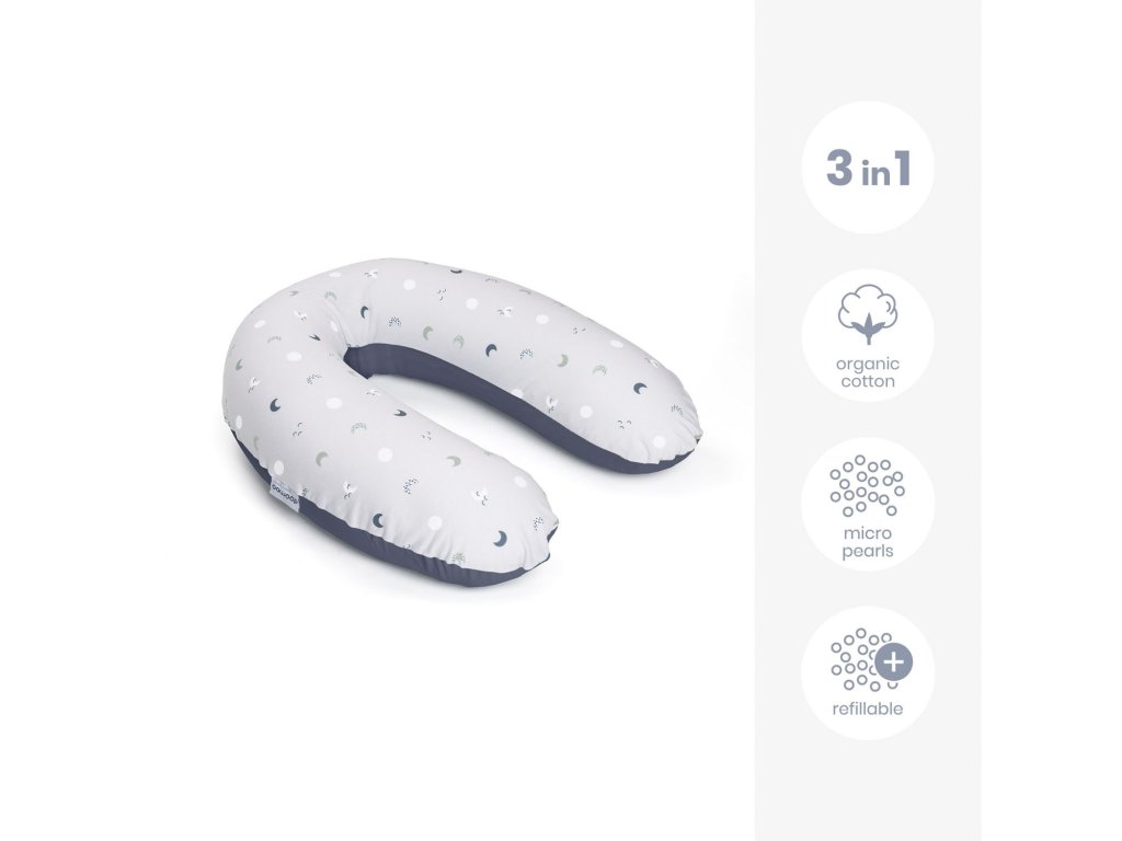 DOOMOO Buddy je velký multifunkční polštář jak pro miminko tak jeho rodiče. Díky jeho tvaru, flexibilitě a měkkosti jeho těla nabízí možnost se uvolnit a kompletně zrelaxovat. Maminkám v očekáváních je garantován úplný, jedinečný komfort během těhotenství a také během kojení či krmení děťátka z láhve. A co je hlavní, miminko bude v naprostém pohodlí v různých polohách.