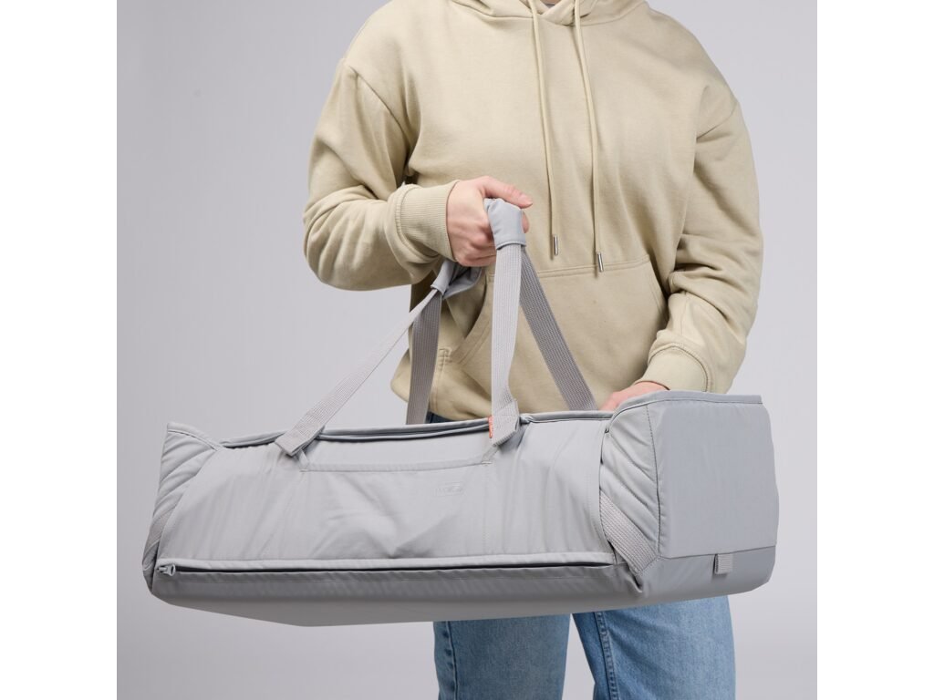 Vnitřní část je kompletně z 3D síťoviny, která zajišťuje pohodlné a bezpečné místo pro vaše miminko. K dispozici má i lehce pratelnou matraci potaženou organickou bavlnou. Spodní část je vybavena pevným odnímatelným dílem, čímž je dosažena velká odolnost produktu. Výplň je z pěnového materiálu a vnější látka z recyklovaného polyesteru, spodní část je velmi snadno udržovatelná, stačí ji jen otřít. V základní výbavě je snadno odepínatelný nánožník, který je větru i voděodolný. Inovativní funkce zámku Voksi Soft ReleaseTM uvolňuje ucha k přenášení pouze tehdy, jsou-li kompletně uzamčené rohy produktu. Díky této funkci je nošení ještě bezpečnější. Pokud rohy na produktu odemknete, nelze lůžko přenášet, ale rozloží se do plochého tvaru. Uzamčení a odemknutí rohů na Carry Me je neslyšné, a tak neruší miminko při spánku. Každou stranu lze uvolnit separátně. Pokládejte Carry Me vždy na vodorovnou plochu, aby se nám miminko neskutálelo ven. Nikdy miminko nenechávejte bez dozoru. Nepoužívejte v posteli. Schváleno dle EN 1466:2023. Vždy si přečtěte a dodržujte pokyny pro správné použití.