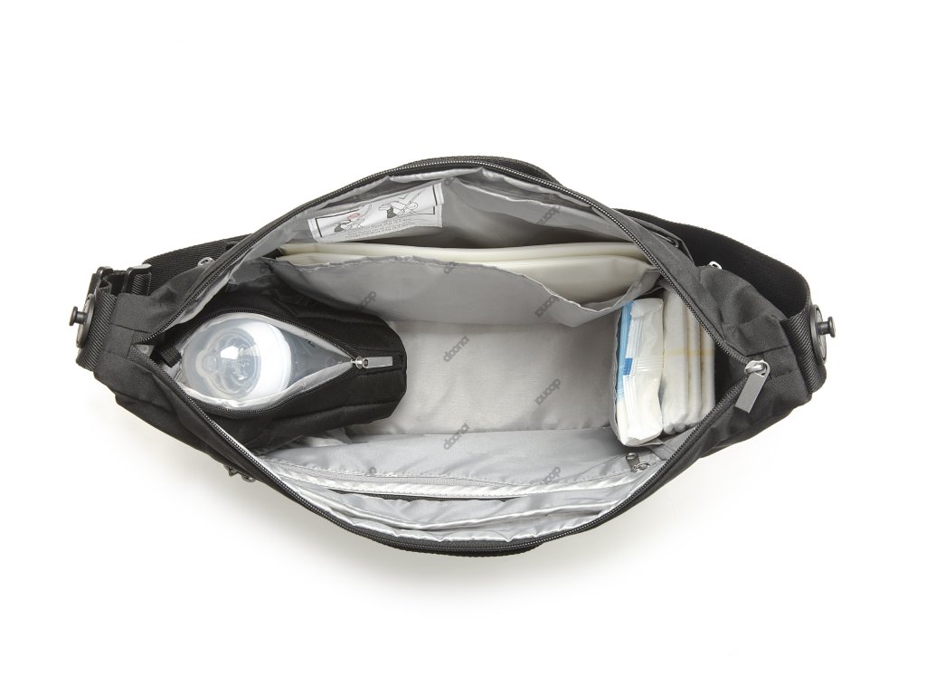 Kromě elegantního designu poskytuje Celodenní přebalovací taška významný úložný prostor pro všechny potřeby Vašeho dítěte díky jejím praktickým kapsám a přihrádkám. Je to ideální společník pro dlouhé dny mimo domov, a obsahuje vysoce kvalitní přebalovací podložku a také termo-regulační obal na láhev. Inovativní rychloupínací konektory umožňují přidělat tašku pouze jedním cvaknutím bez použití adaptérů. Skutečnost, že Celodenní přebalovací taška byla testována a certifikována společně s autosedačkou Doona, zajišťuje, že rodiče mohou připojit tašku na autosedačku Doona, aniž by došlo k narušení její stability.