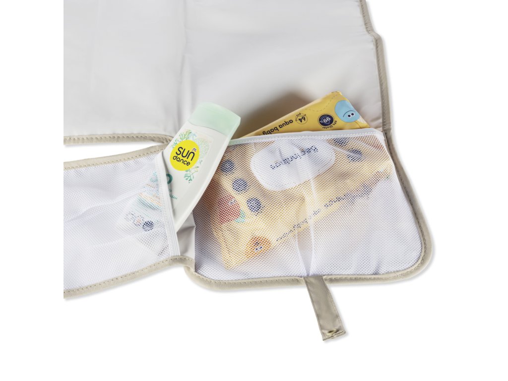 Kompaktní přebalovací podložka se třemi kapsami, která usnadní přebalování na cestách. Snadno se čistí, nezabere místo a vše potřebné máte vždy při ruce.