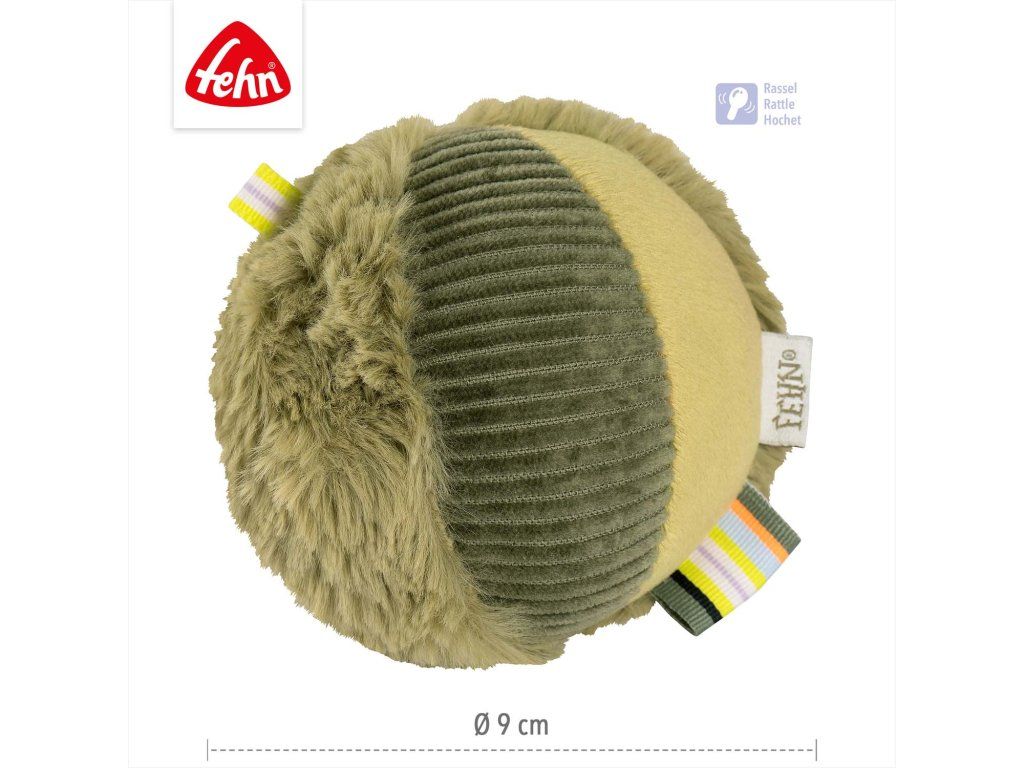 Zajímavá kombinace použitých materiálů stimuluje hmat, podporuje cílený úchop a láká ke zkoumání a hraní. S tímto míčkem nebude společné hraní nikdy nuda.