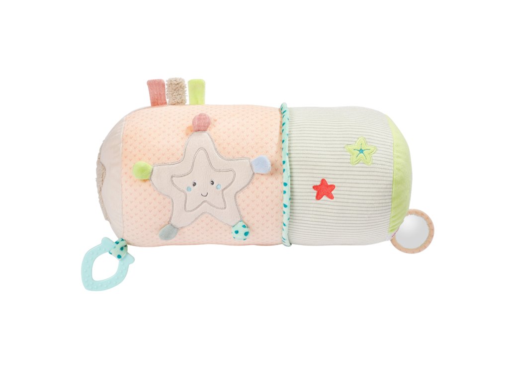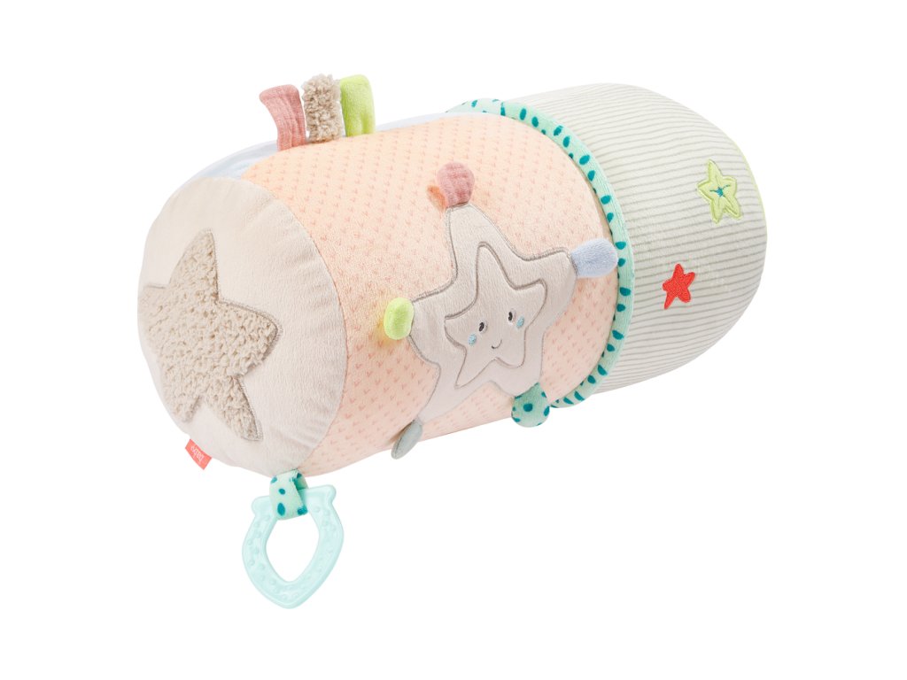 Tento roztomilý chrastící válec na lezení se stane oblíbeným kamarádem Vašeho děťátka. Jeho pestrobarevné provedení je vhodné jak pro chlapečka, tak pro holčičku, které si z jedné strany chobotnici a z druhé hvězdičku určitě zamiluje. Využití příjemných, na dotyk měkkých materiálů je ideáln...