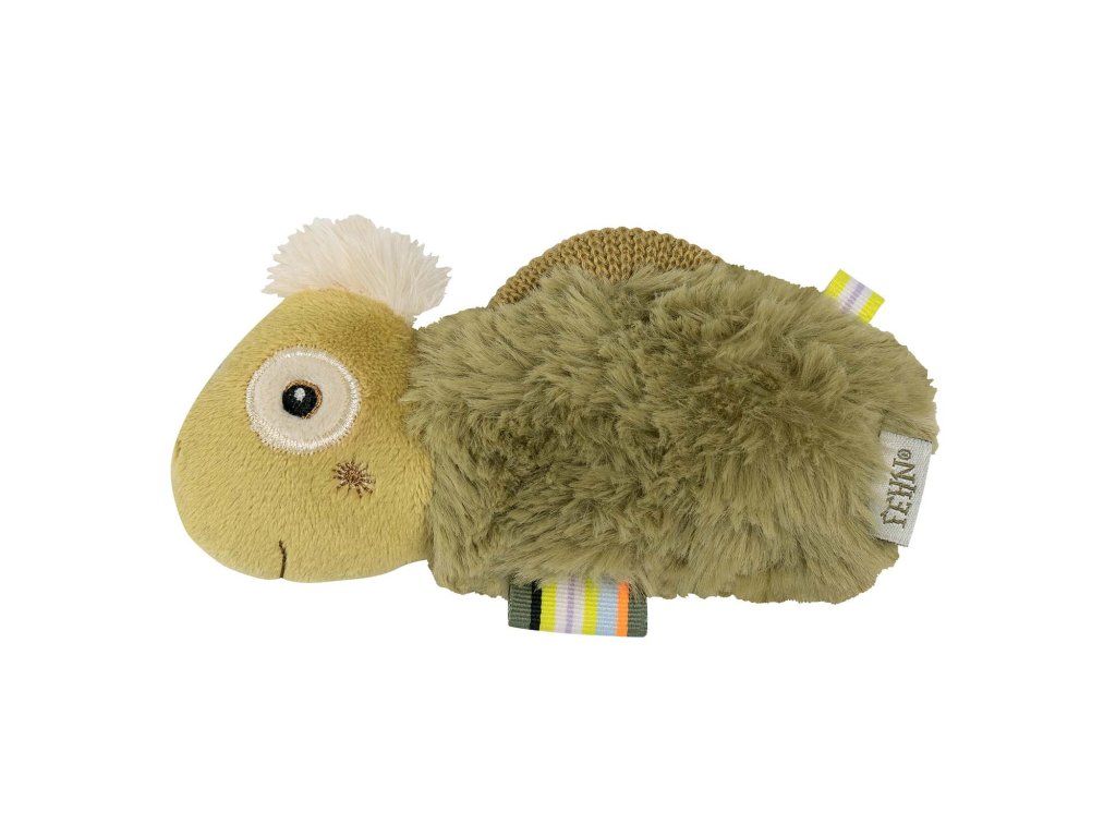 Chrastítko ve tvaru hebkého plyšového chameleona je věrným společníkem pro