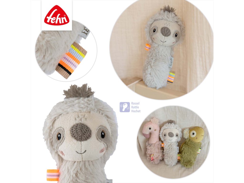 lenochod s chrastítkem hravou formou stimuluje sluch, hmat a jemnou motoriku