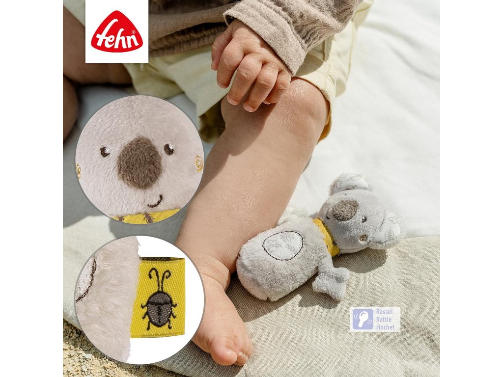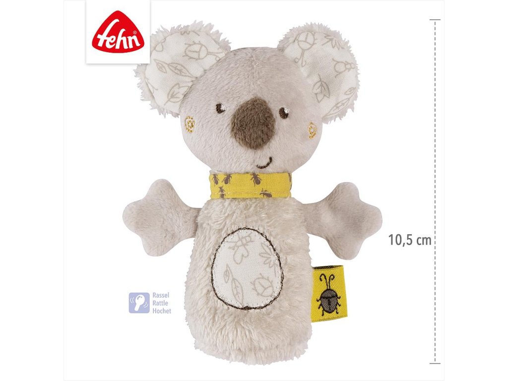 Roztomilá chrastící koala z australské kolekce probudí zvědavost i smysly vašeho miminka už od prvních dnů. Hravě podporuje sluch, úchop i jemnou motoriku, zatímco měkké materiály lákají k prozkoumání. Díky své velikosti a tvaru padne dokonale do malých ručiček a chrastivý zvuk odmění každý pohyb. Perfektní jako první hračka i dárek k narození či křtu.
