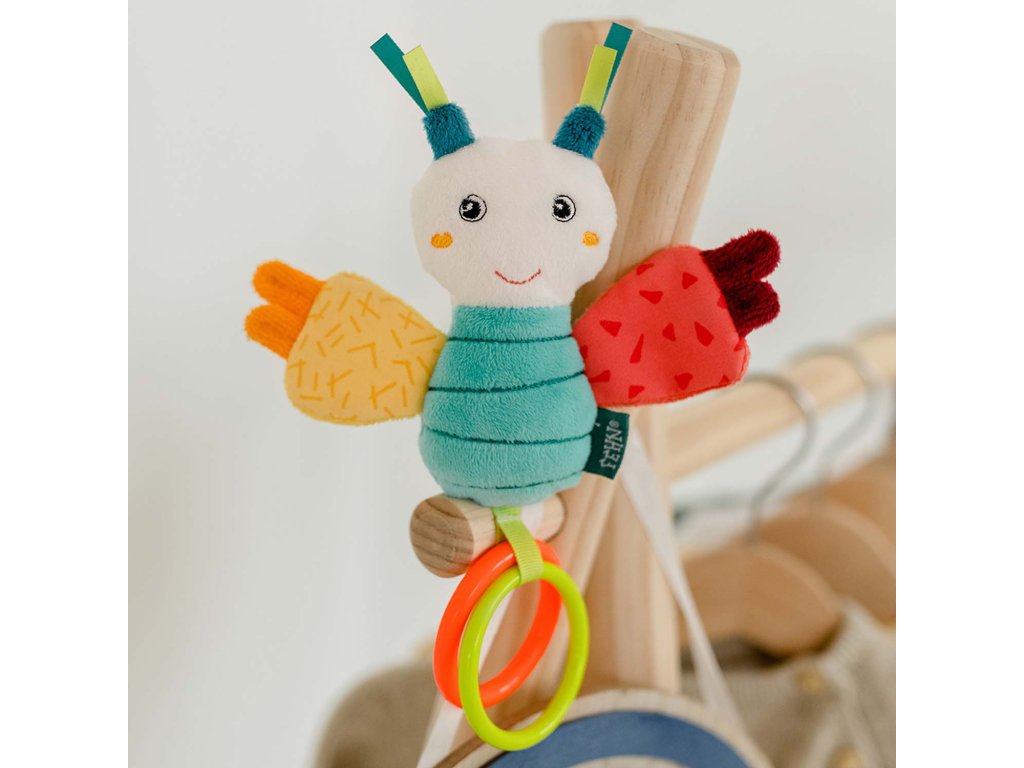 Plyšové chrastítko se spoustou aktivity prvků jako je úchopový kroužek, chrastítko, pískací mechanismus a skřípavý papír. Hračka na uchopení hravě podporuje sluch dítěte, smysl pro zrak, hmat, zdravé uchopení– ideální jako dáreček pro chlapce a dívky k narození, narozeninám či křtu.