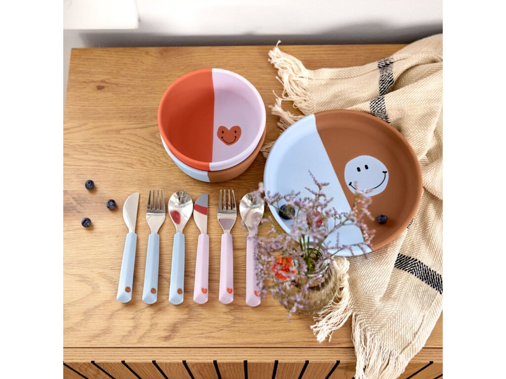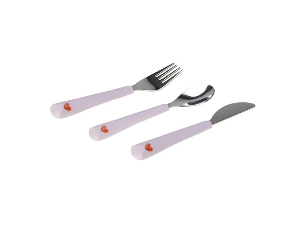 LÄSSIG Cutlery with Silicone Handle 3pcs Happy Rascals 2025 heart lavender