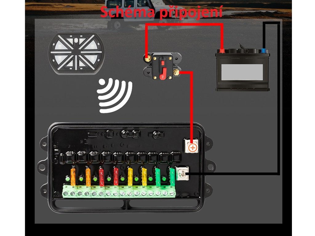 Bezdrátový spínač umožňuje spínat osm různých světel a jiná zařízení s příkonem do celkových 80A (2x30 A+2x20 A+2x10 A+2x5 A). 8 skupin spínacích výstupů, takže můžete externě ovládat např. 8 skupin LED světel a příslušenství dohromady, aniž byste zabírali další místo. Vysoká citlivost, stabilita...