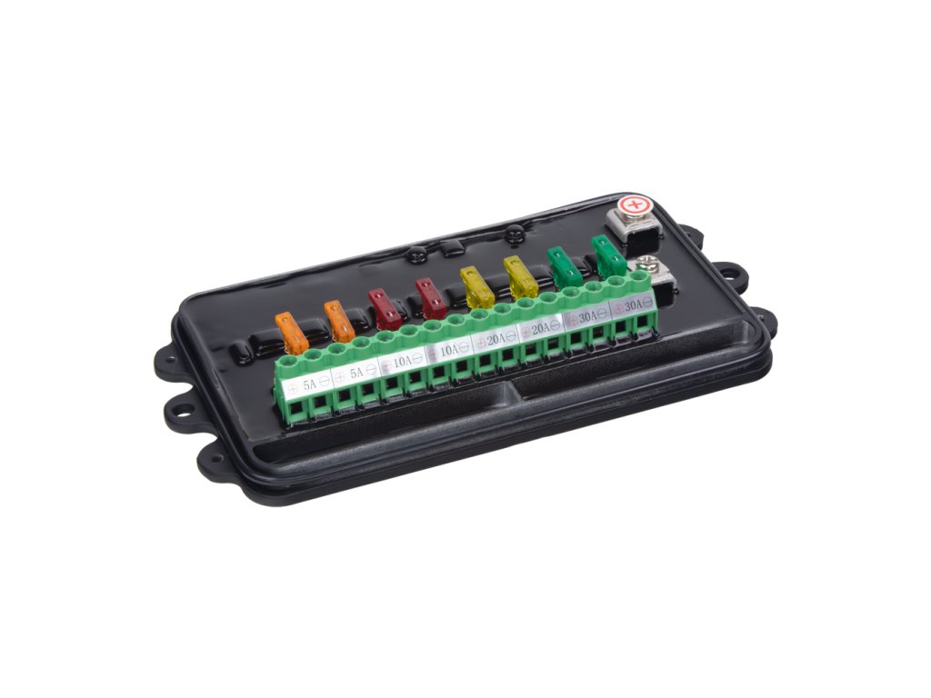 • výstupní zátěž: max. 80 A (2x 30 A + 2x 20 A + 2x 10 A + 2x 5 A)