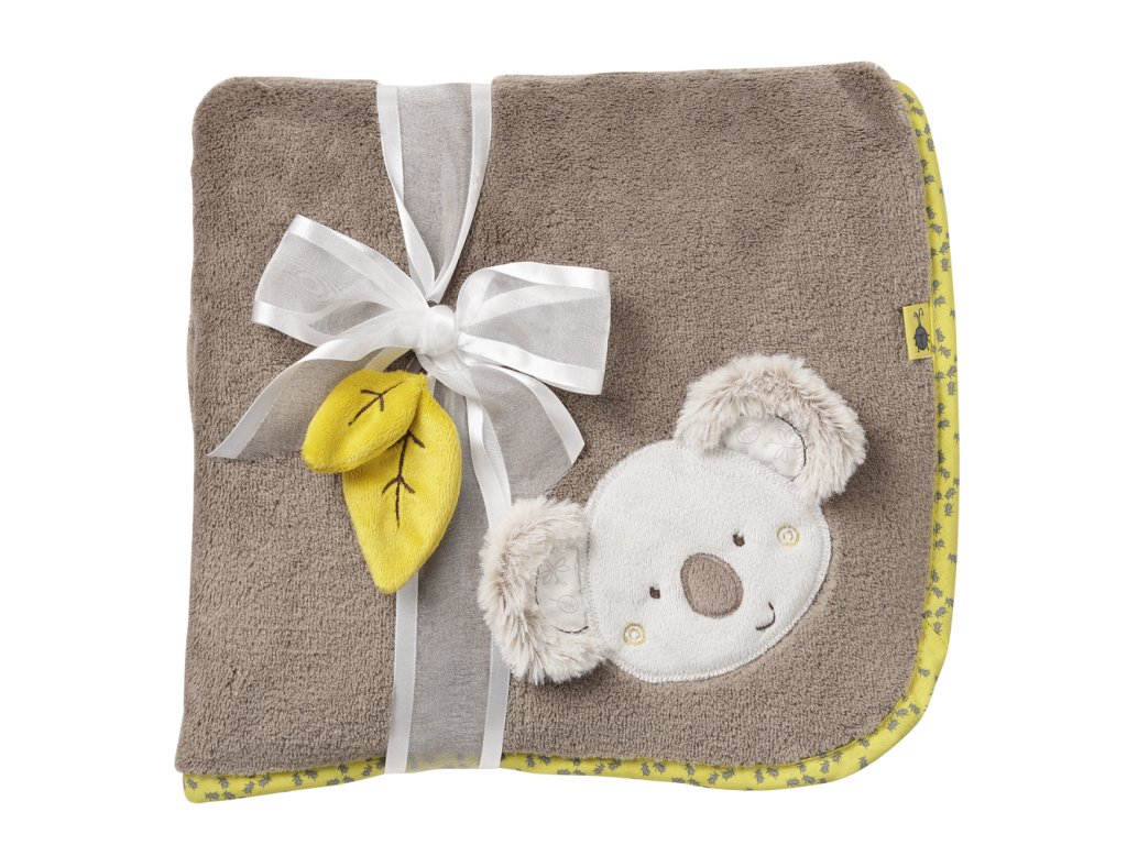 Příjemně měkoučká a jemná deka pro Vaše děťátko. Díky veselému motivu kamarádské koaly si ji zamiluje každé děťátko. Příjemná kombinace hnědého základu a jemných zelených detailů lemu deky s roztomilým motivem mravenců je vhodná jak pro holčičku, tak pro chlapečka. Pro příjemné chvíle tulení, pro Vaše zlatíčko.