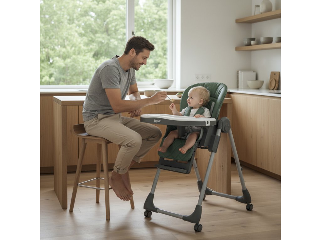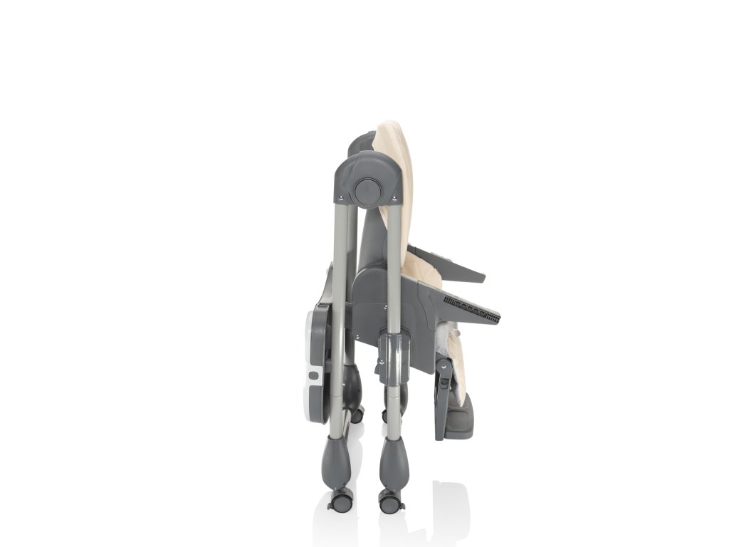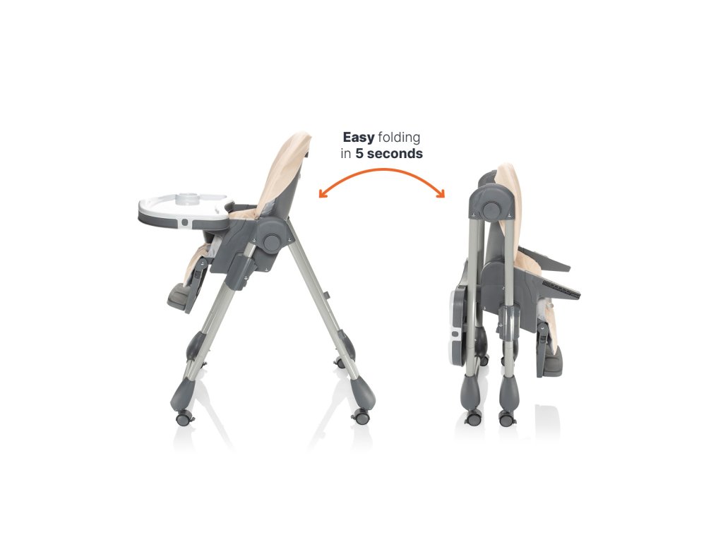 Jídelní židličku Monti 2 lze snadno složit a díky jejím kompaktním rozměrům ve složeném stavu nebude zabírat mnoho místa. Navíc je vybavena kolečky s brzdou pro snadnou manipulaci a přemísťování. Pro snadnou manipulaci lze pultík zavěsit na židličku, a tak nebude nikde zavazet, když zrovna nebude používán.