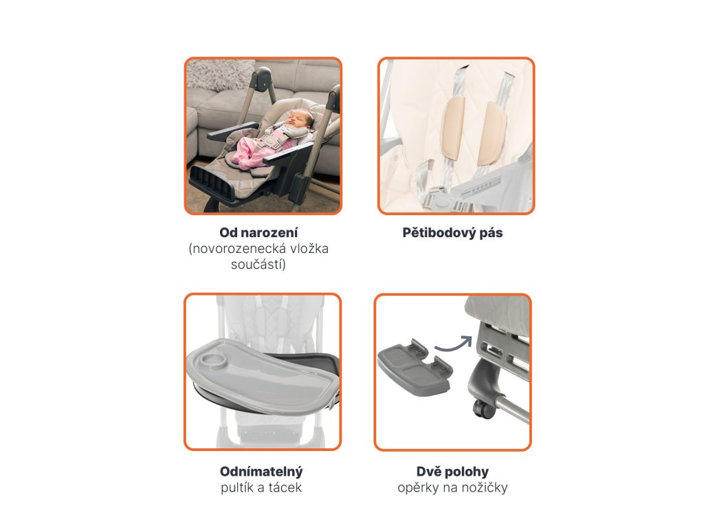 • 3 polohy opěrky pro nožičky s možností nastavení výšky