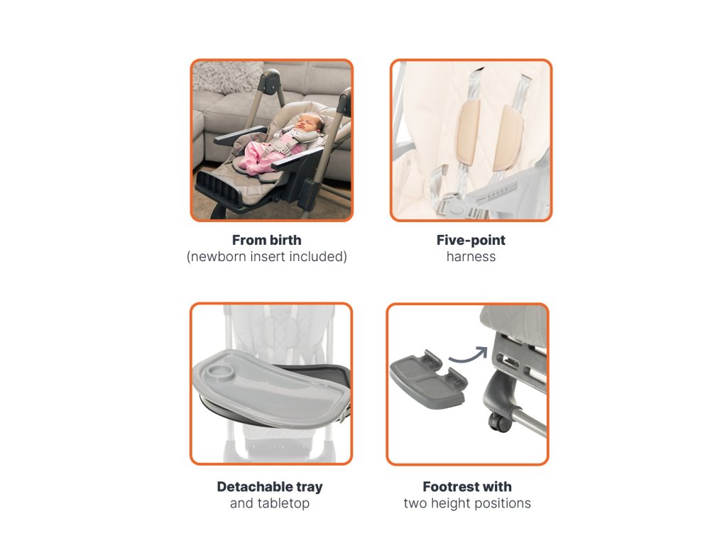 Ačkoliv rodiče na to mají jiný názor, děti si občas myslí, že je jídlo zábava, a tak je všude jinde jen ne v bříšku. Pro Monti 2 to není žádný problém. Svrchní část pultíku židličky slouží jako odnímatelný tácek, lze jej snadno sejmout a umýt v myčce na nádobí. PU potahy, které lze jednoduše očistit zajistí, že tato zábava na nich nezanechá žádné stopy.