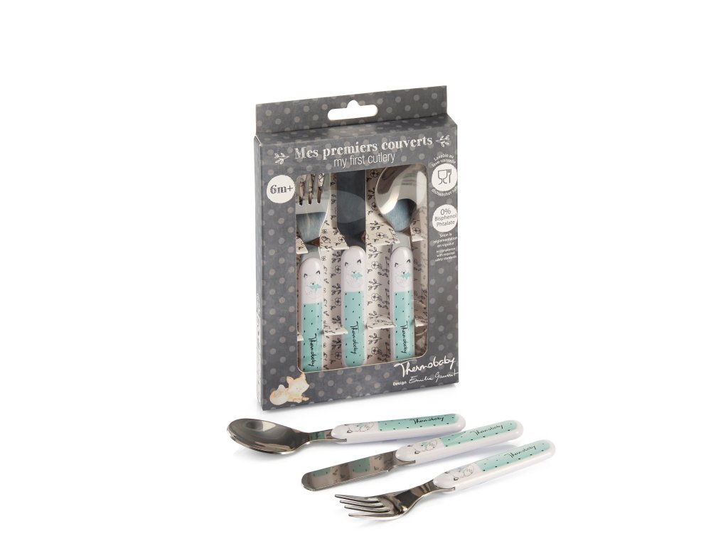 Thermobaby dětský příbor je ideální parťák pro děti začínající jíst příborem. Každé dítě se snaží co nejvíce napodobovat rodiče a to samozřejmě i při jídle. S příborem v líbivém designu bude učení zábavou. Pro bezpečí malých strávníků jsou všechny ostrá hrany zaobleny tak, aby byl příbor bezpečný, ale zároveň šel normálně použít.