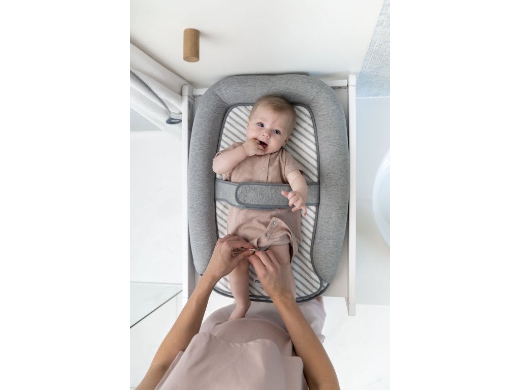 Doomoo Cosy Care je měkká a bezpečná výměnná podložka. Má bezpečnostní pás,