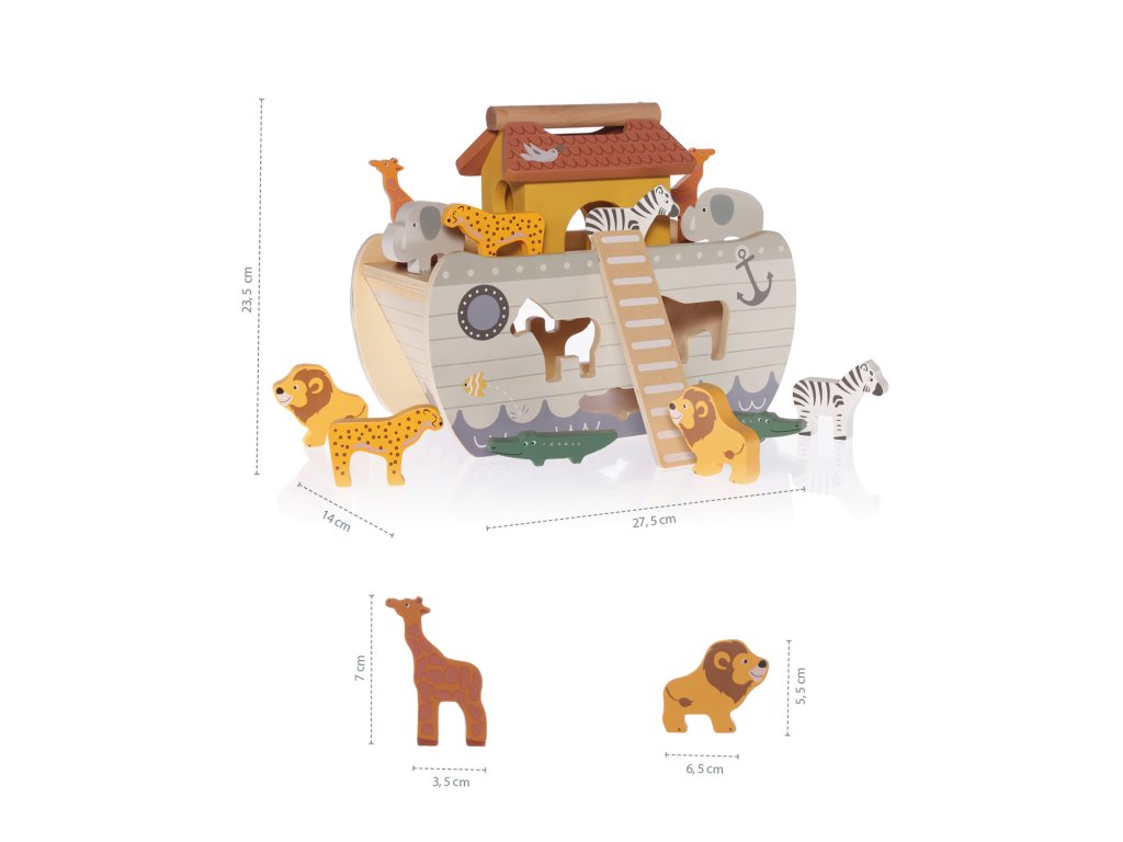 Znáte příběh o Noemově arše?Dopřejte svému malému dobrodruhovi zachránit říši zvířat, tak jako to stojí v biblickém příběhu o Noemovi a arše. Dřevěná vkládačka rozvíjí koordinaci ruka-oko, logické myšlení, představivost a učí rozpoznávat zvířátka. • Vhodné pro děti od 18 měsíců• Rozvíjí před...