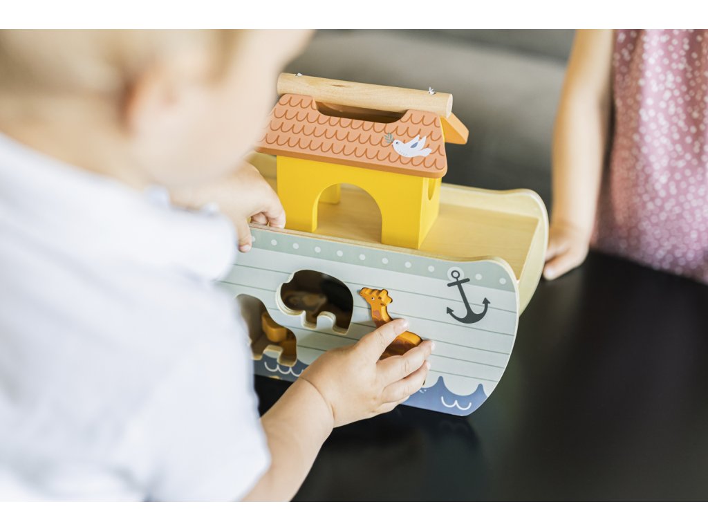 Noemovi a arše. Dřevěná vkládačka rozvíjí koordinaci ruka-oko, logické myšlení,