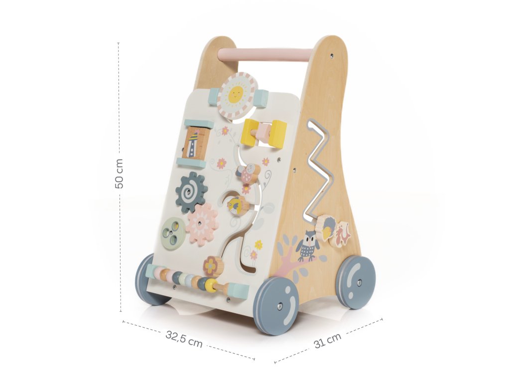 Krok za krokem do světa objevování!Dřevěné aktivity chodítko nejenže podporuje nácvik chůze, ale je také vybaveno mnoha prvky, které rozvíjejí koordinaci oko-ruka - váš mrňous zažije s chodítkem spoustu zábavy, ale také bude radostnou a poutavou hrou podporovat svůj psychomotorický vývoj. Součás...