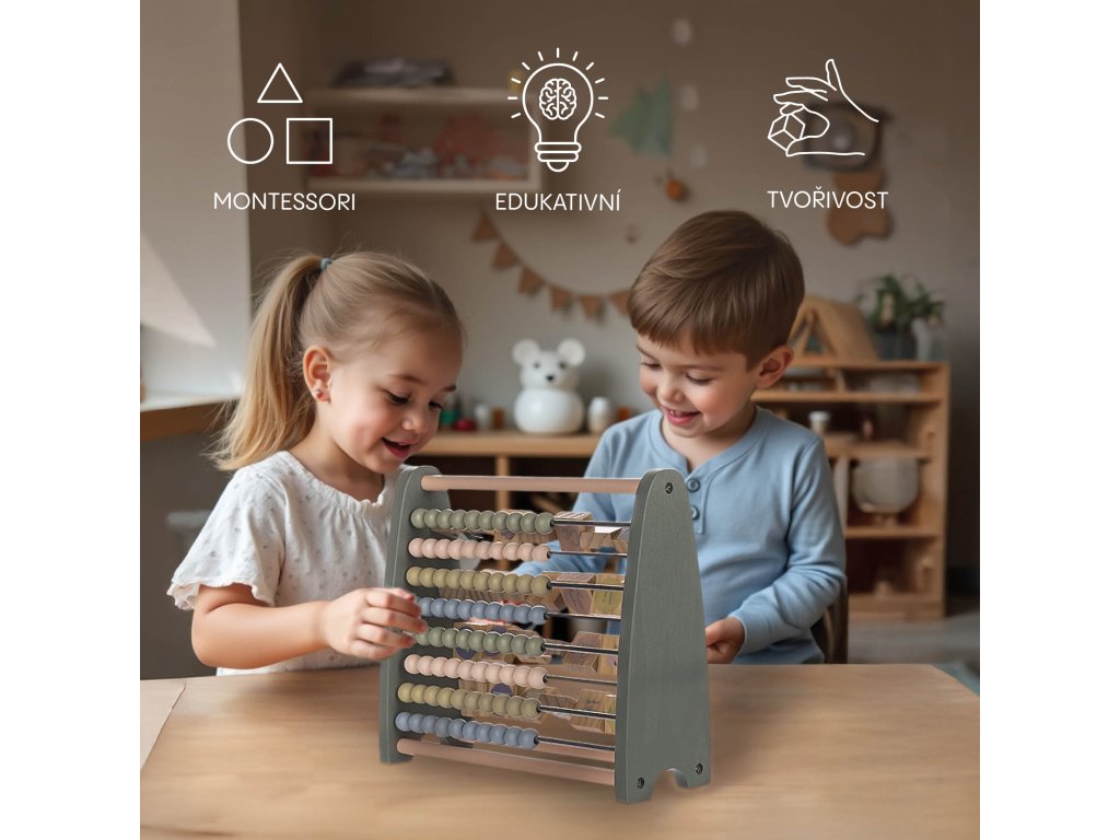 Hravé učení čísel a abecedy pro nejmenší Hledáte hračku, která kombinuje zábavu, vzdělávání a krásný design? Dřevěné oboustranné počítadlo ZOPA je perfektní volbou pro děti od 12 měsíců. Na jedné straně klasické počítadlo s barevnými korálky, na druhé otočné kostičky s písmenky, zvířátky a tvary....