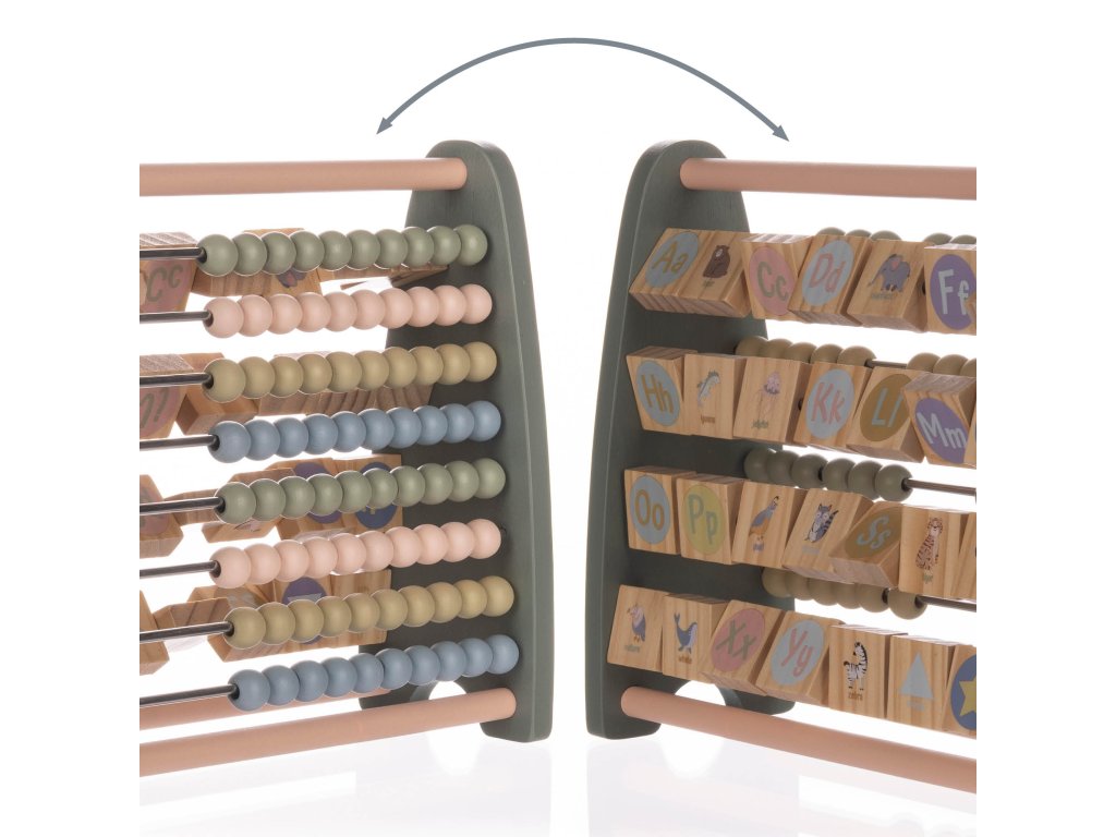 • 2 hračky v 1 – z jedné strany počítadlo s korálky, z druhé abeceda s