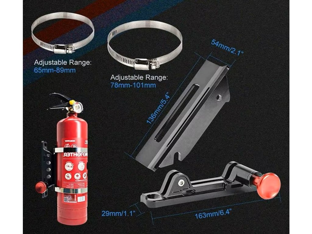 Univerzální montáž: Vhodné pro různé velikosti a typy hasicích přístrojů a pro montáž v autě, nákladním voze, dílně nebo závodním voze.