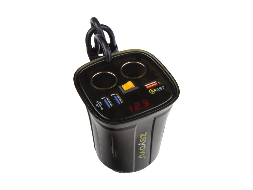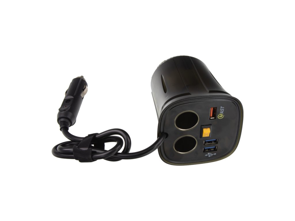 Dvojitá CL zásuvka s 3x USB+voltmetrem do držáku nápojů