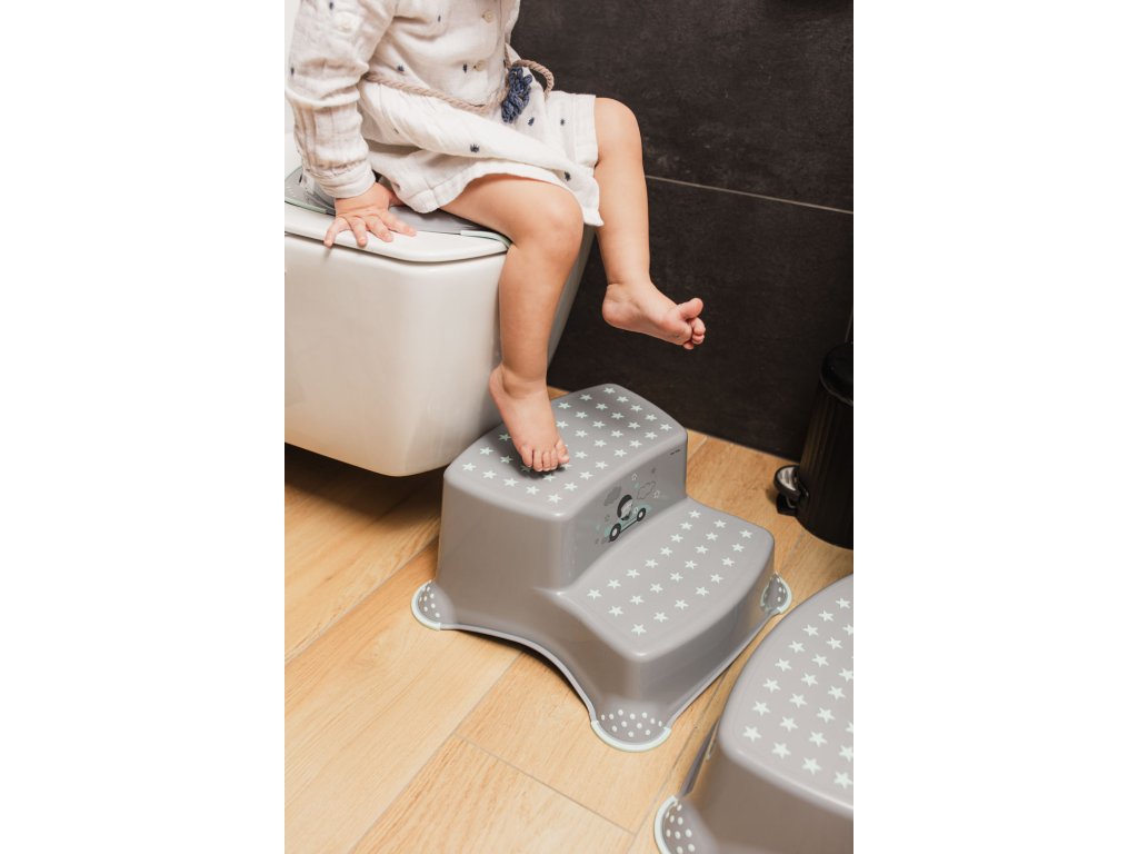 Dvojstupínek pro malé děti k umyvadlu a k WC s protiskluzovou úpravou pomáhá bezpečně si osvojovat základní hygienické návyky. • Protiskluzová ochrana podnoží slouží ke stabilitě stoličky • Protiskluzová ochrana na povrchu stupínku snižuje riziko uklouznutí • Maximální hmotnost zátěže je 50 kg • ...