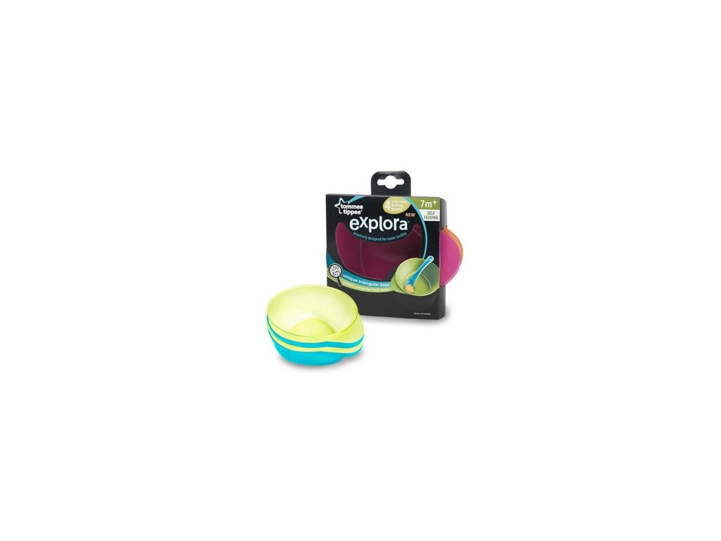 Misky Tommee Tippee Explora díky svému unikátnímu trojúhelníkovému tvaru dna usnadňují nabírání příkrmu lžičkou.