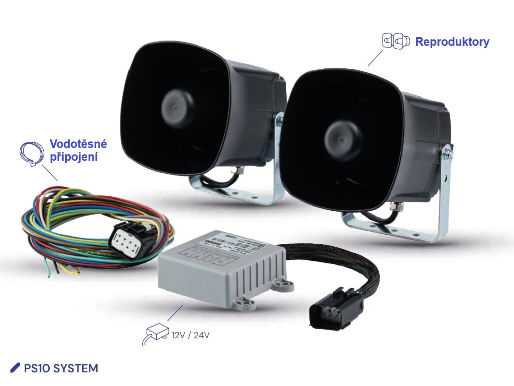 PS10 je elektronický modul který byl vyvinut a vyroben společností FIAMM Itálie pro pohotovostní a bezpečnostní vozidla. PS10 má vysokou odolnost proti vodě a prachu (IP67). PS10 může být instalován v agresivním prostředí, jako je v motorovém prostoru vozidla. Malé rozměry PS10 umožňují snadnou instalaci. PS10 je určen pro dlouhodobou funkci s vysokou hladinou akustického tlaku, takže může být namontován na každém prioritním vozidle. Pro systém PS10 je určen některý z 2 reproduktorů (951053 a 951054) pro každé požadavky na instalaci vozidla. Systém PS10 je schválen proti elektromagnetickému rušení v souladu s restriktivní normou CEE 2009/19 a EHK Reg.10.
