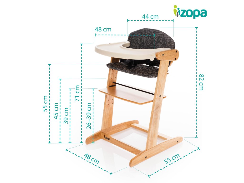 Židlička Grow Up je kvůli maximální bezpečnosti vyrobena z pevného a pružného dřeva. Proto je trvanlivá a splňuje veškeré mezinárodní bezpečnostní normy. Dřevěný pultík je pro snadnou údržbu vybaven svrchním odnímatelným plastovým táckem, který slouží k odložení jídla a nápojů. Po jeho použití ho stačí pouze otřít vlhkým hadříkem či umýt v myčce.