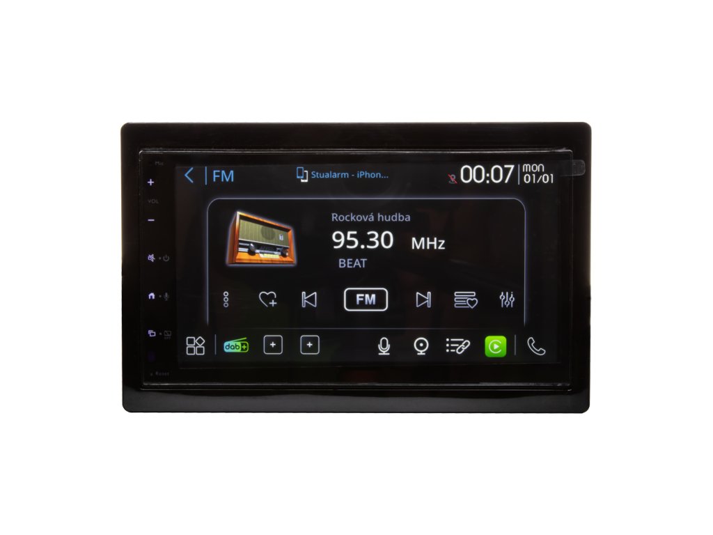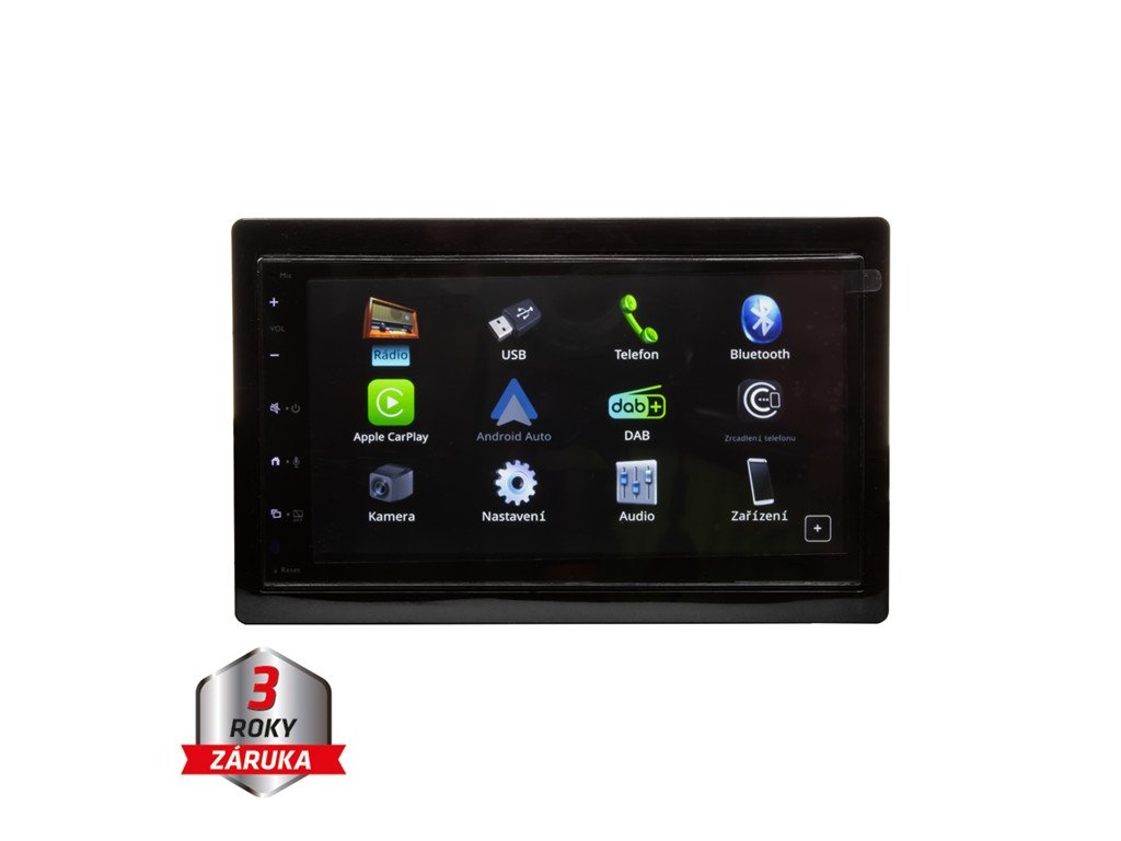 2DIN multimediální autorádio s 6,8" palcovým (17,2 cm) dotykovým displejem, USB přehrávačem, AV vstupem, vestavěnou technologií Bluetooth a vestavěným dvojitým tunerem pro analogové i digitální příjem FM / AM / DAB+ - Radio Data System.