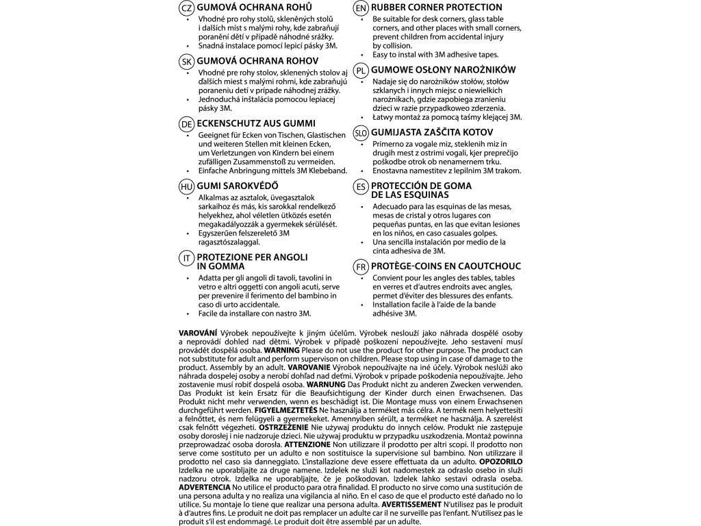 • Gumová ochrana rohů spolehlivě zakryje rohy konferenčních stolků, skleněných stolů a dalších míst s malými, ostrými rohy