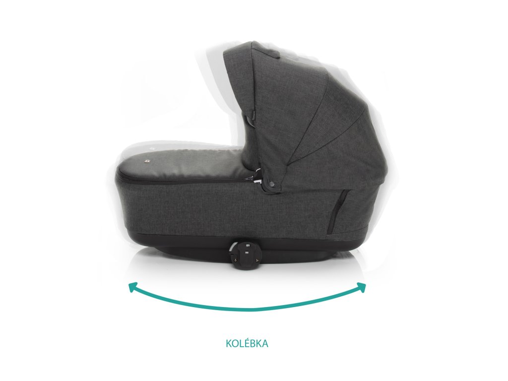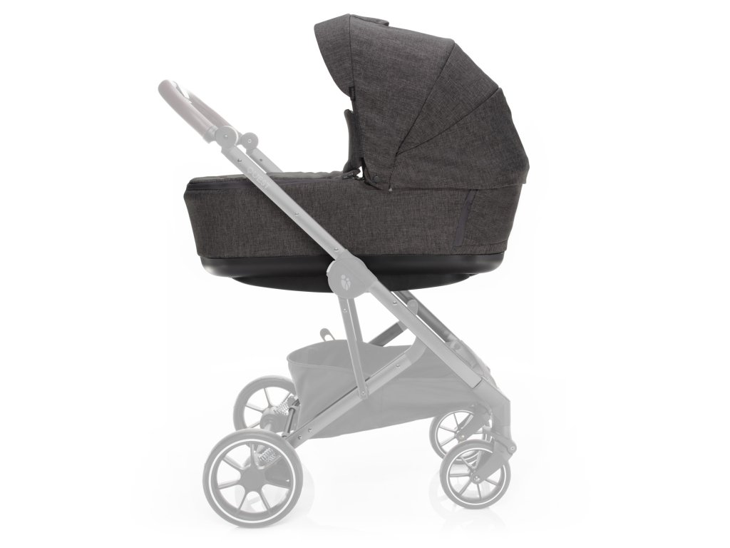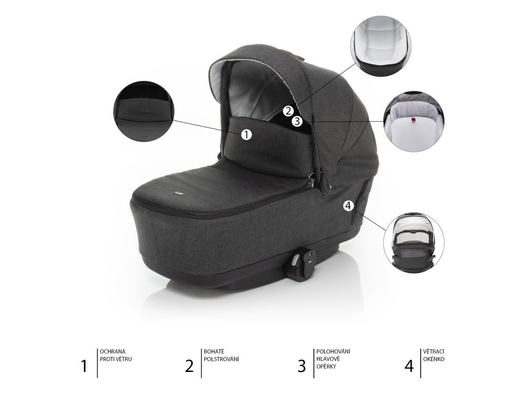 Hlubokou korbu můžete po sejmutí z podvozku využít buď jako kolébku, třeba na návštěvě. Anebo s pomocí zajištění na spodní straně docílíte, že korbička bude pevně stát. U stříšky je pak nezbytnou součástí sluneční clona. Přičemž korba je dále vybavena madlem pro přenášení, elegantně skrytým ve stříšce kočárku. Tímto způsobem madlo nijak nenarušuje vzhled kočárku.