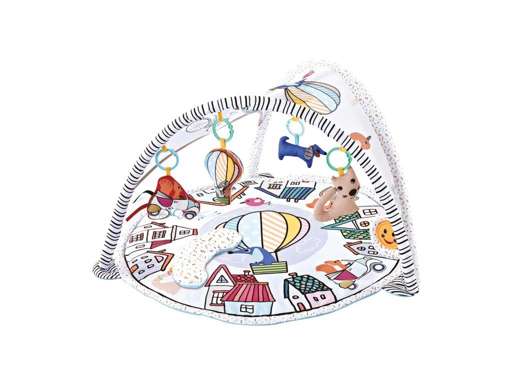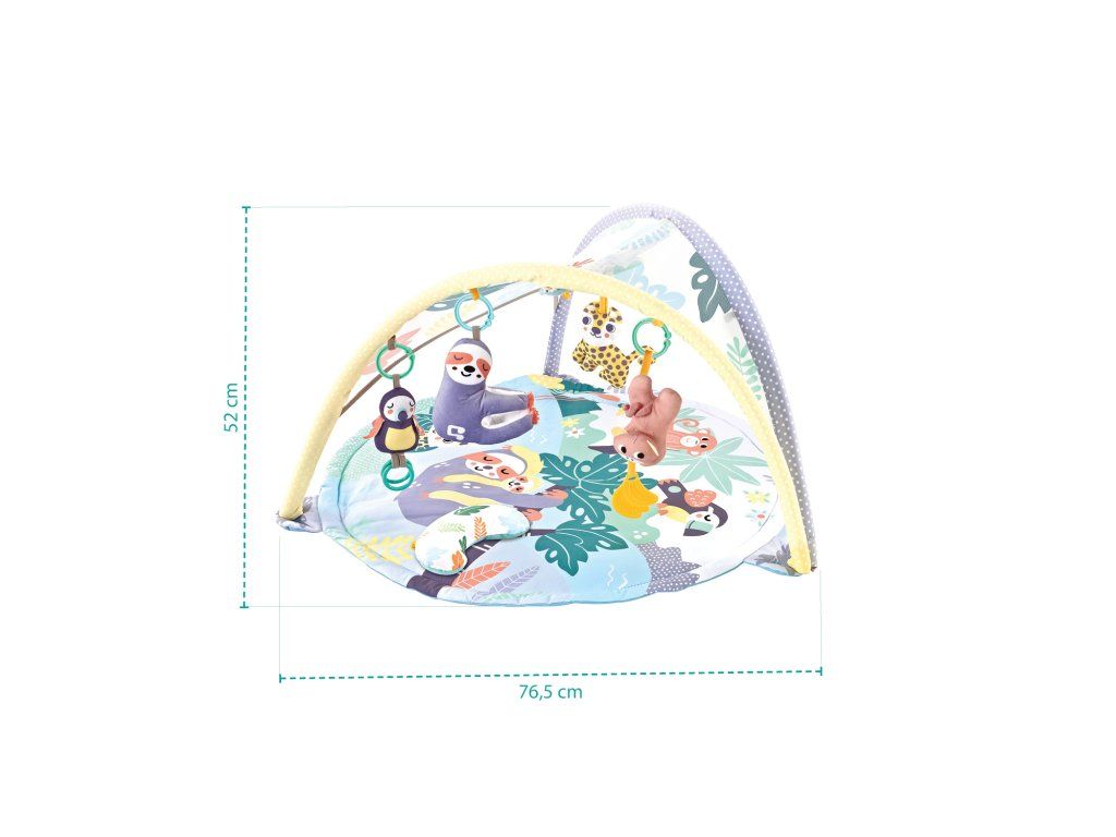 Ležící miminko zaujmou visící hračky, které ho motivují po nich sáhnout, aby je rozhoupaly a rozcinkaly. Děťátko tak trénuje své psychomotorické dovednosti. Pro uklidnění lze pustit příjemnou melodii z jedné ze závěsných hraček.