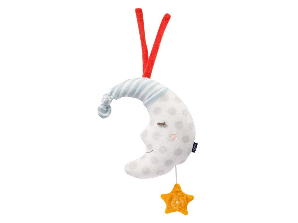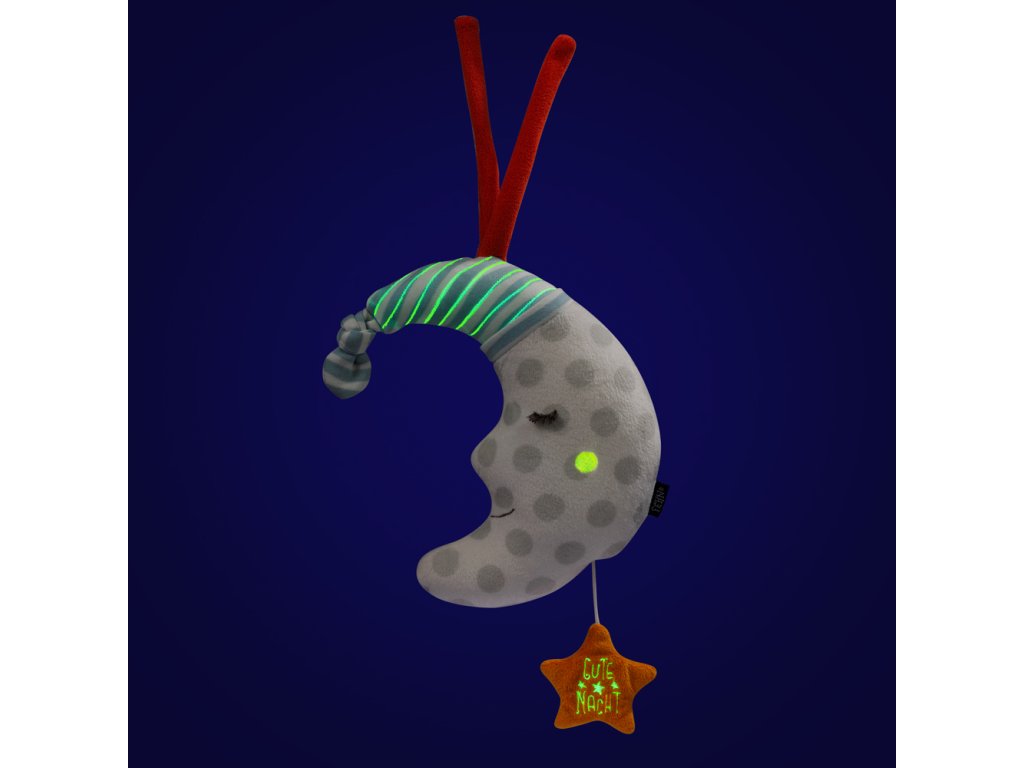 Roztomilá plyšová hračka na mazlení ve tvaru malého měsíčku se stane věrným parťákem vašeho dítěte již od narození. Přes den plní funkci mazlivého kamaráda, v noci ukolébá dítě melodií „Sleep Baby Sleep“. Světelné body pomohou dítěti rozptýlit obavy ze tmy a pomoci mu lépe usnout.