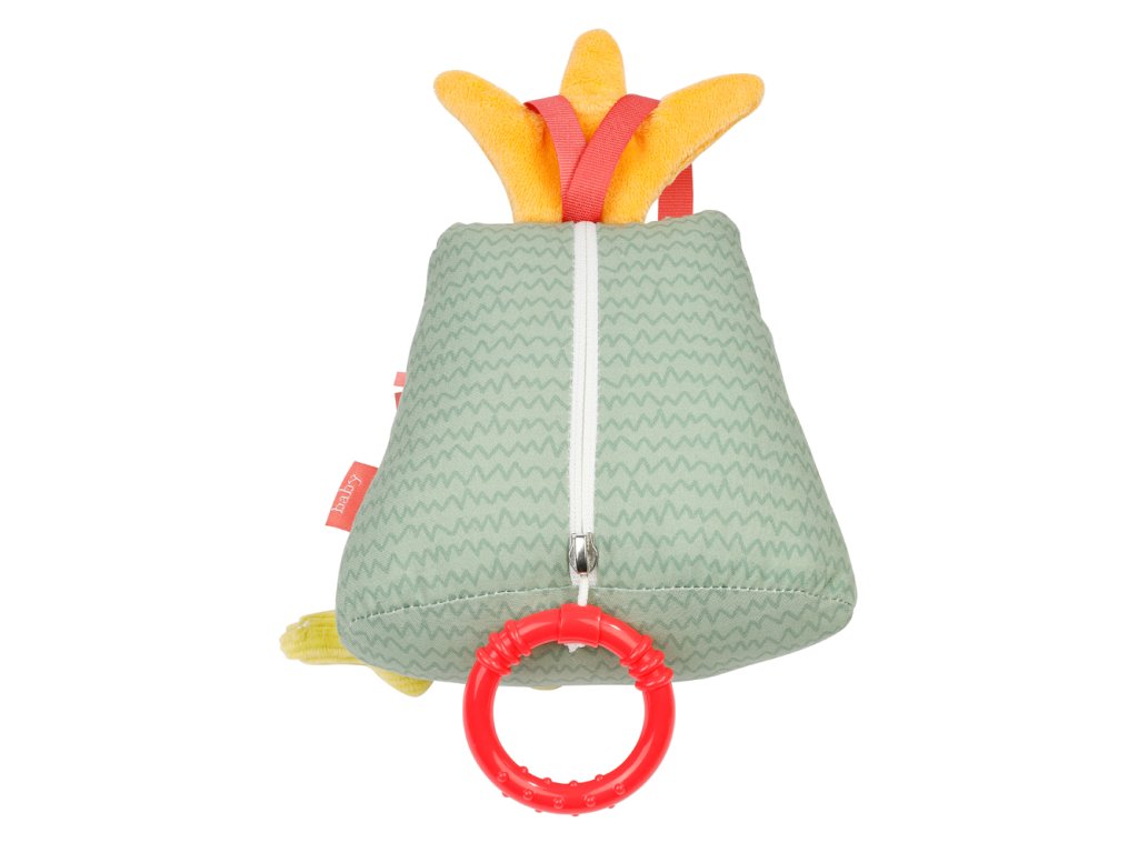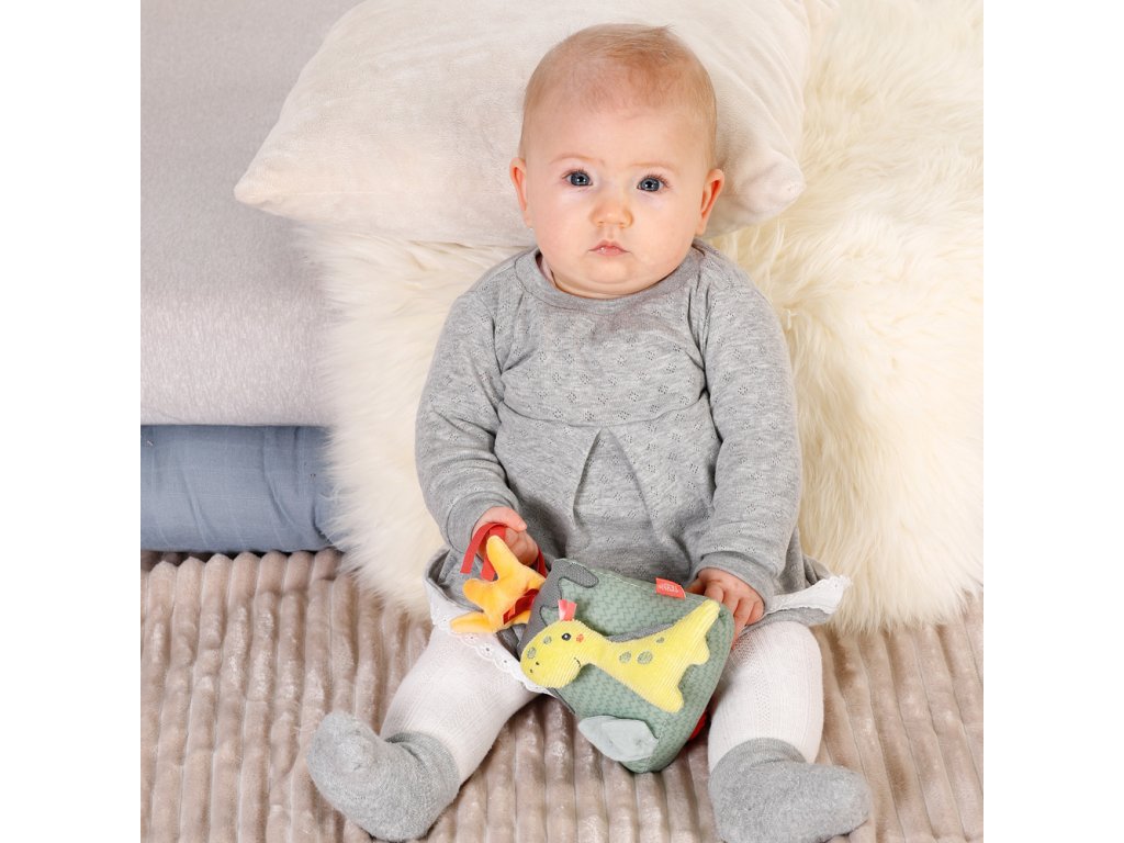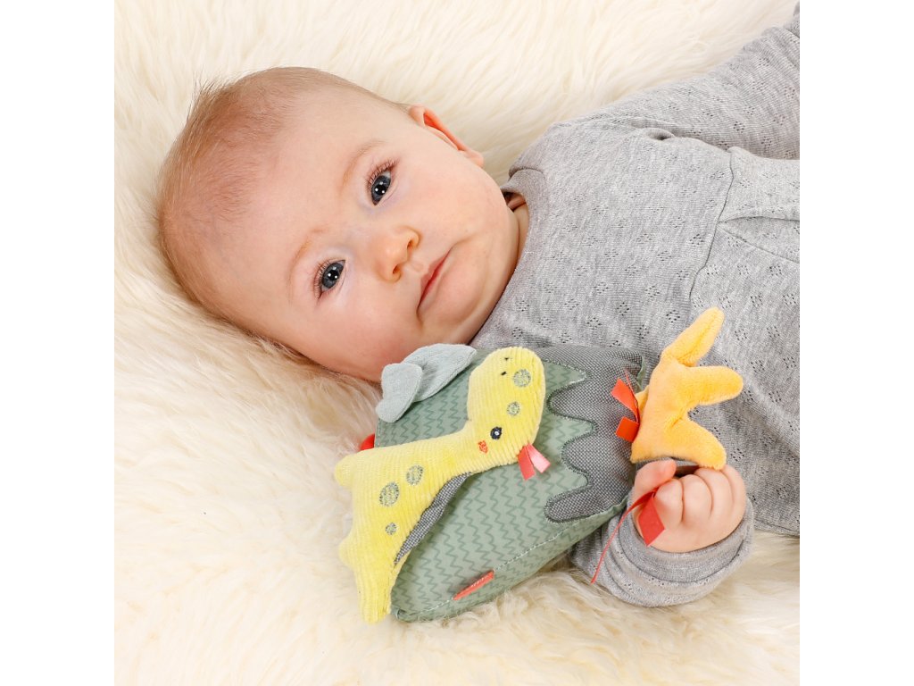 Roztomilá plyšová sopka s dinosaurem se během chvilky stane nejlepším kamarádem vašeho miminka. Je vyrobena z kvalitního materiálu a uvnitř je schovaný natahovací hudební mechanismus. Ten po zatáhnutí za kroužek hraje Schubertovu ukolébavku, která trvá 2 minuty a má příjemnou hlasitost. Hračka také rozvíjí dětskou fantazii, jemnou motoriku a pomáhá dětem usnout. Díky dvěma stuhám ji lze snadno připevnit na postýlku, kočárek nebo autosedačku, takže ji dítě může mít kdekoliv s sebou.
