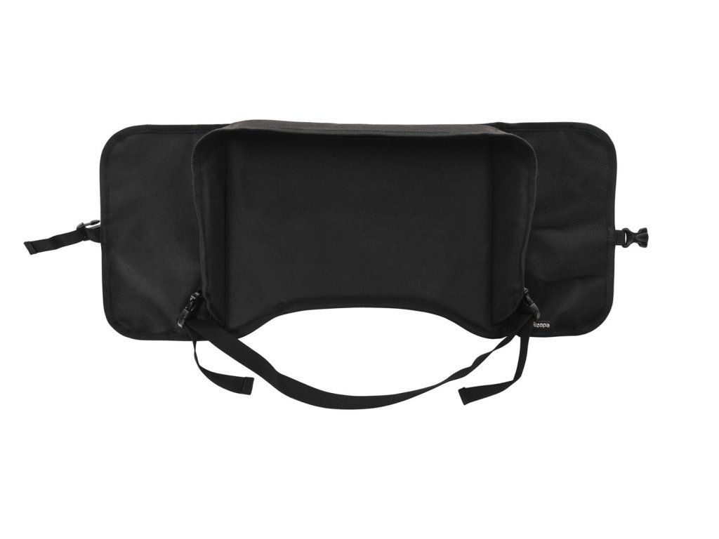 Snadno se upevní pomocí nastavitelného pásku na autosedačku. Po stranách má prostorné kapsy pro ukládání věcí.