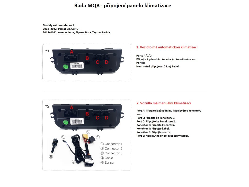 Pokud je původní auto manuální klimatizace, použijete senzor "KLPSENZOR", součást balení.